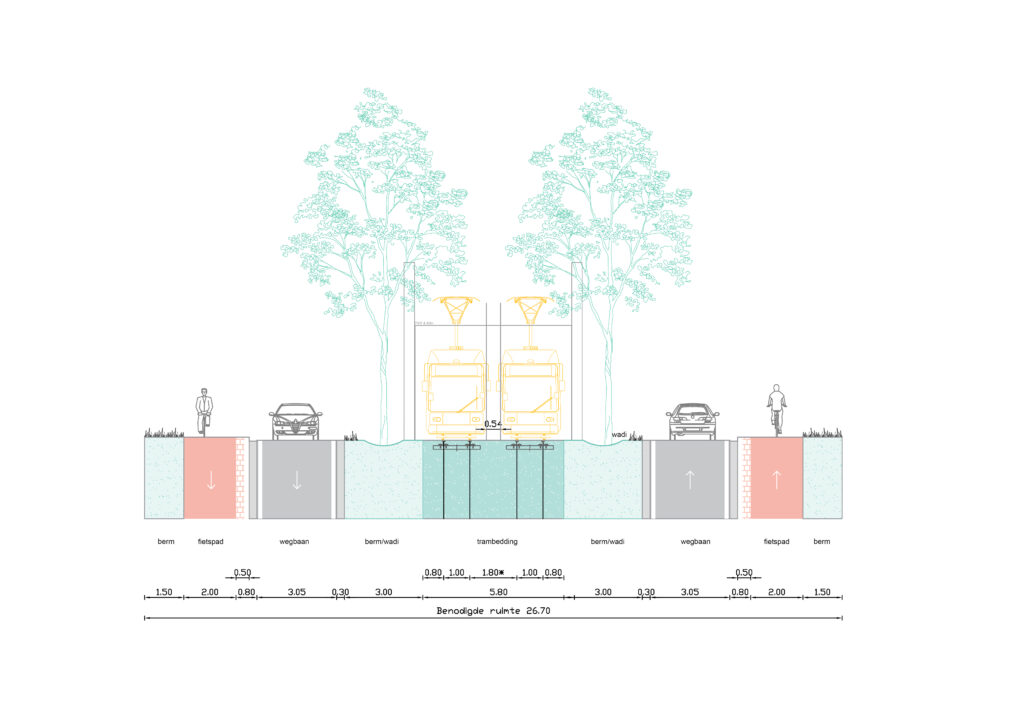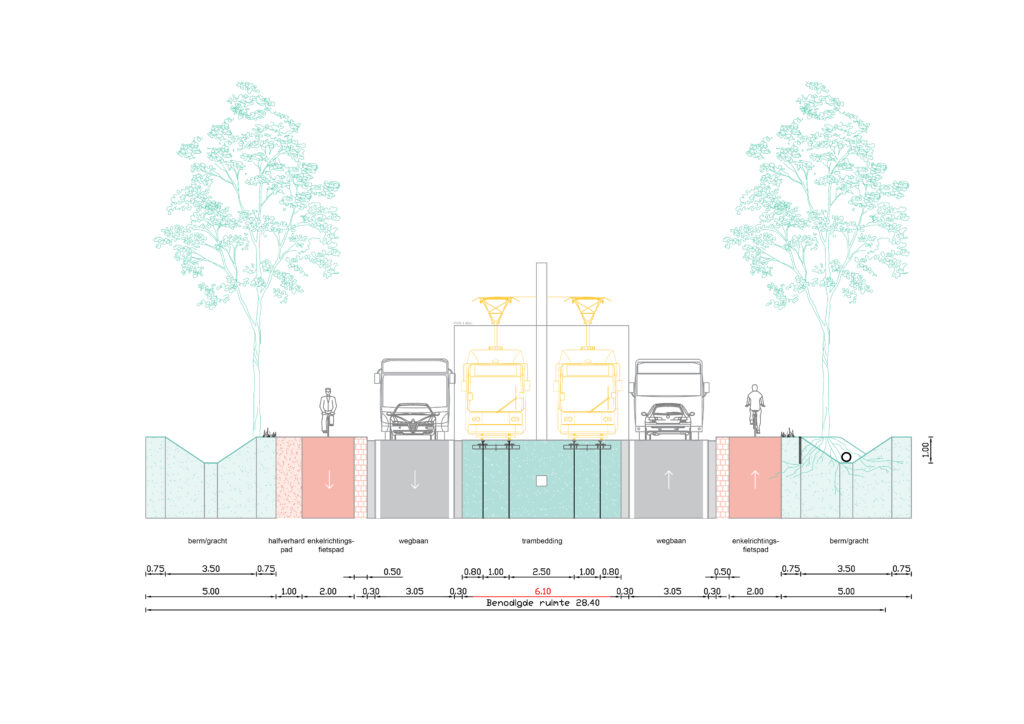 Profiel met infiltratiebermen tussen trambedding en rijweg